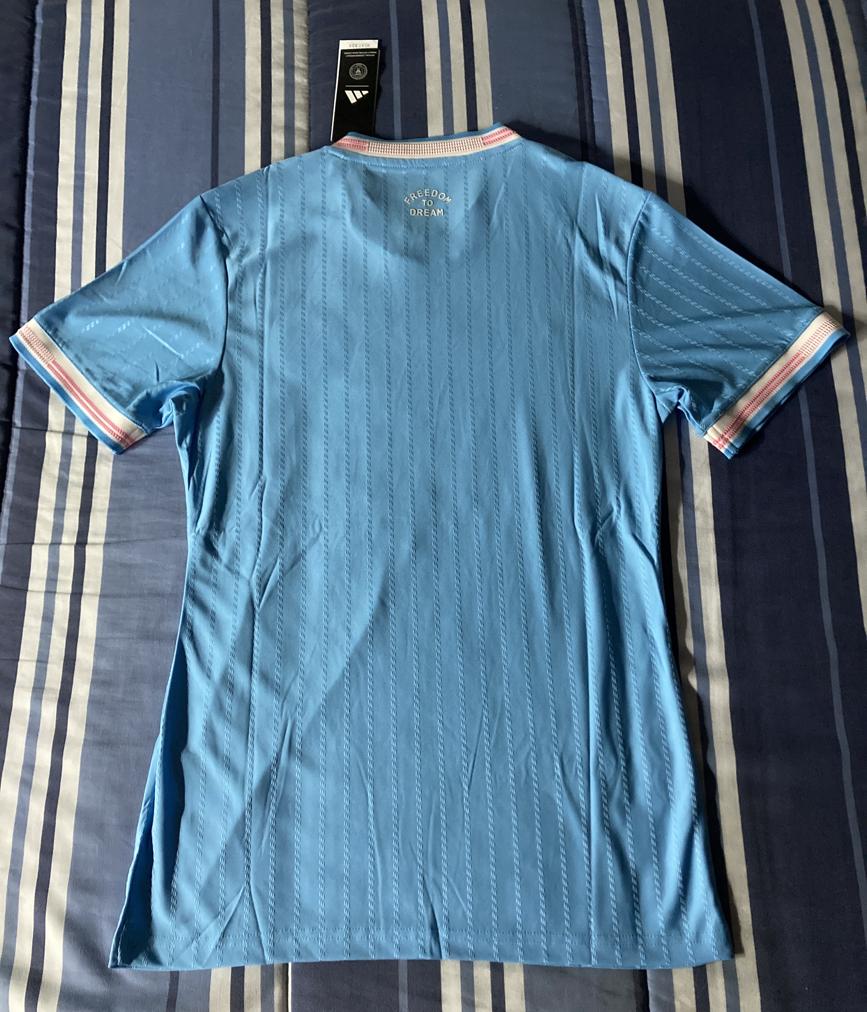 Pedí la camiseta azul de Caroline Weir con el número 10 y por el precio que me costó no puedo pedir más. Era para un regalo y la persona a la que se la regalé flipó y me preguntó que si era falsa y que dónde narices la había comprado.