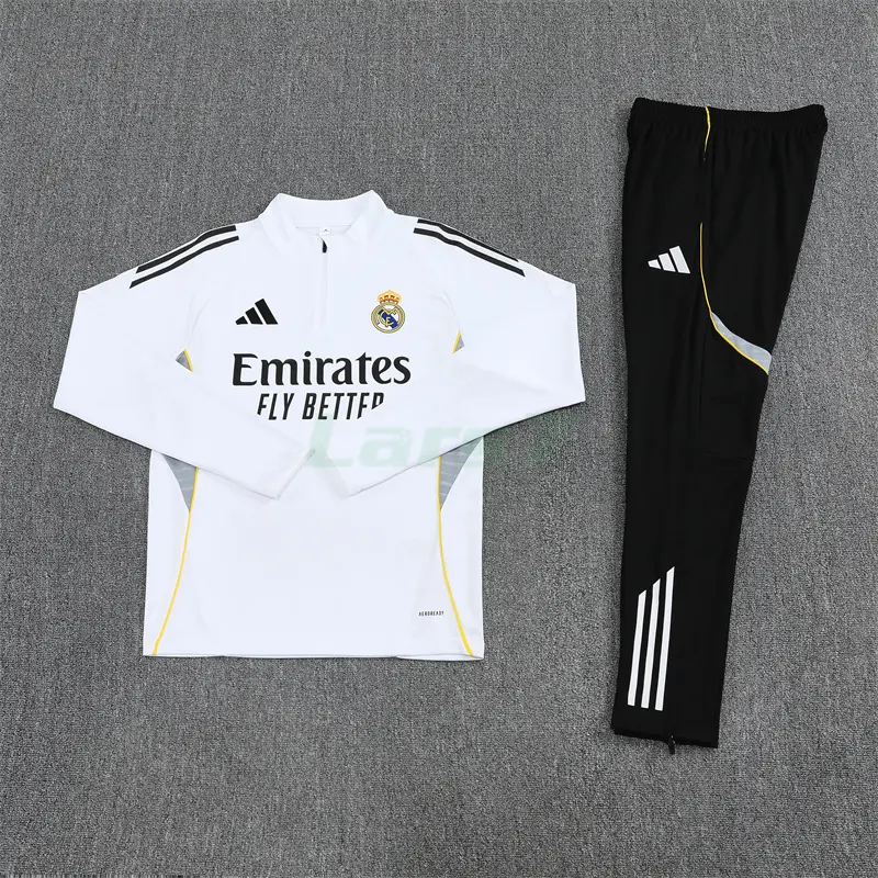 Sudadera De Entrenamiento Real Madrid 2025/2026 Kit Blanco Incluido una sudadera y un pantalón largo de entrenamiento. El precio más bajo en toda la red. 100% de calidad Tailandia AAA. No te preocupes por las fotos, recibirás 100% de los productos que deseas. (Logotipo del equipo, marca, nombre del patrocinador, etc.)...